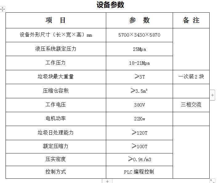 2.采用垂直壓縮方式,壓縮力大,垃圾塊壓實密度大。